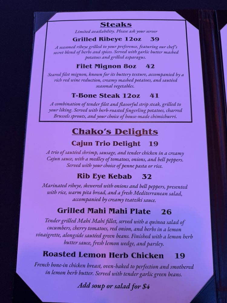 Chako's Social, located in Downtown Fullerton, offers a vibrant and modern dining experience. Their diverse menu includes dishes like Acai Bowls, Avocado Toast, Breakfast Tacos, and Brunch Charcuterie Boards. The cocktail selection features unique creations like Bobby Fischer's Bourbon Bramble and Chako's Spicy Passion. The atmosphere is lively with DJ sets, live music, and happy hour specials. Customers rave about the friendly staff, delicious food, and exciting vibe. Notable daily specials include $5 Seoul Wings on Wednesdays and $30 steaks on Fridays with a BYOW option. Chako's Social also caters to pet owners with a pet-friendly happy hour on weekdays. With a focus on providing top-notch service and a fun, festive ambiance, Chako's Social stands out as a go-to spot for brunch, evening gatherings, and sports events.
